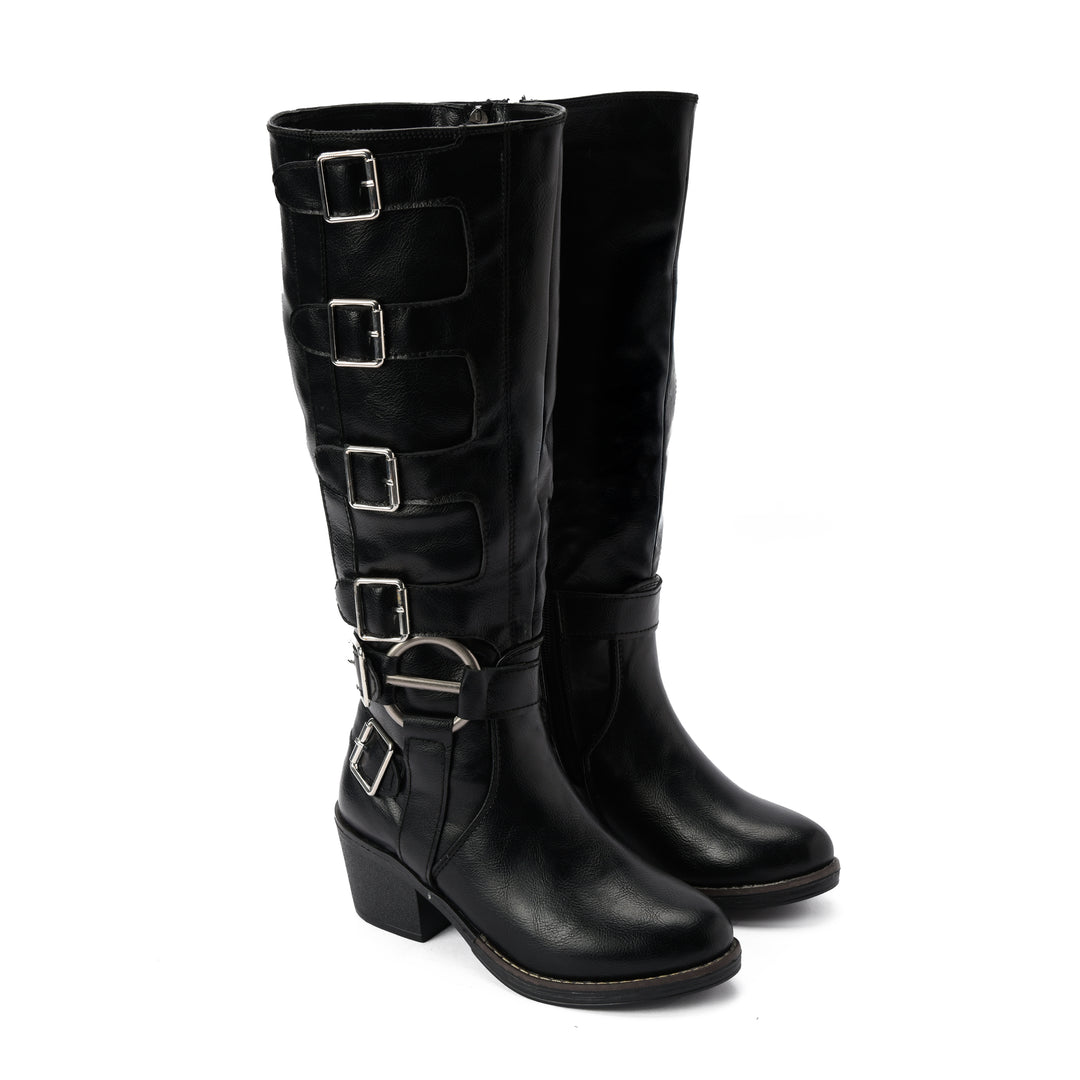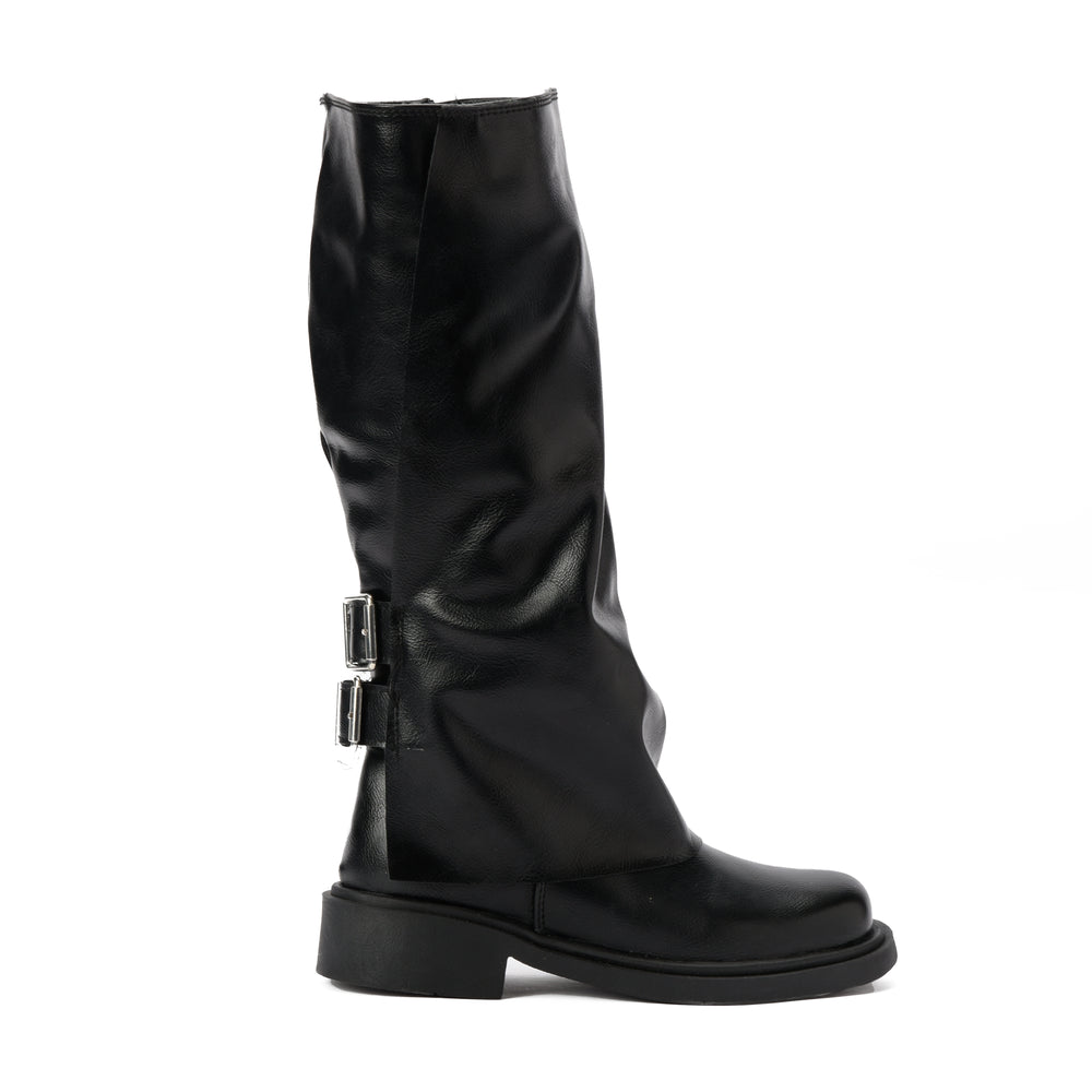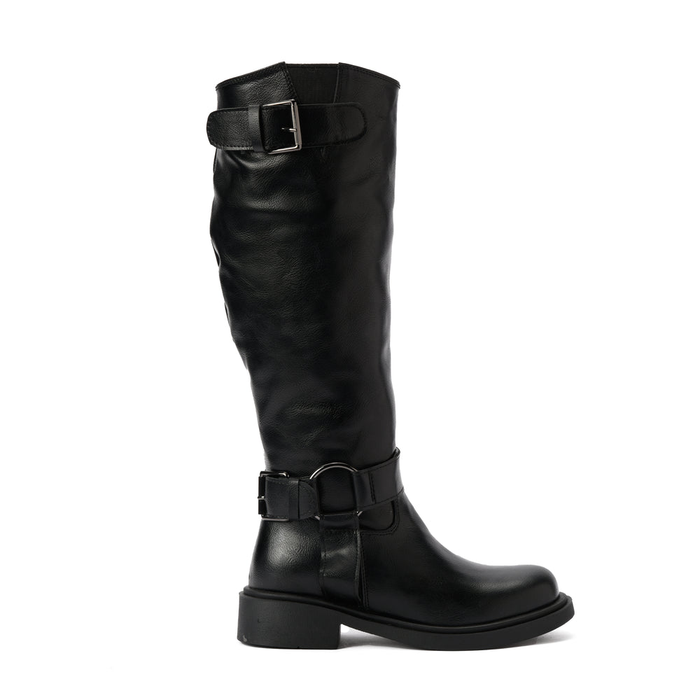 Brava — Rider Buckle Knee Boot- Black