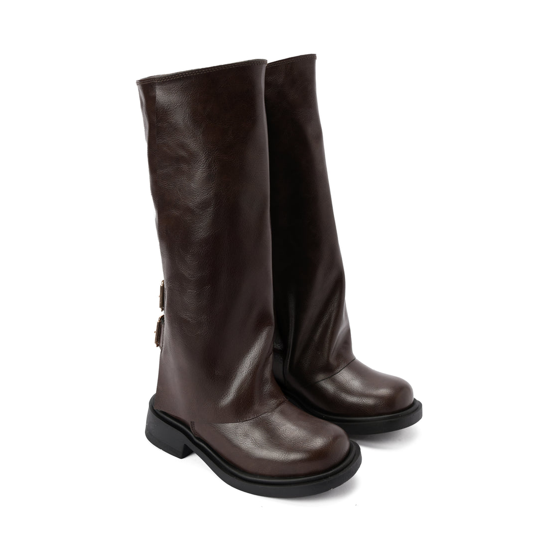 Brava — Rider Buckle Knee Boot- Brown