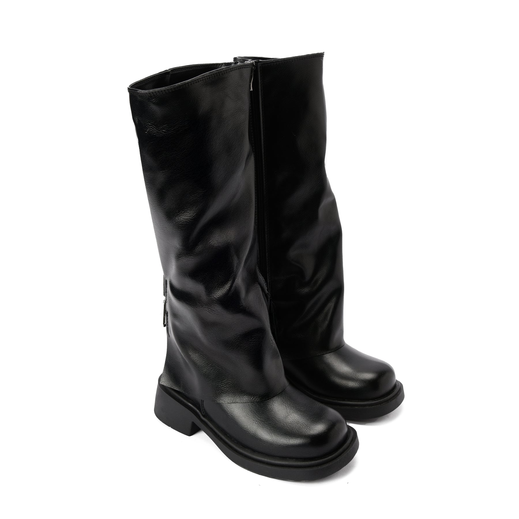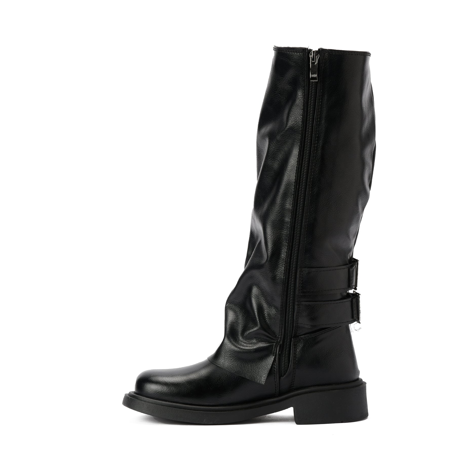 Clean lines, subtle hardware. This streamlined knee boot features two side cinch buckles and an easy inside zip—crafted for everyday polish with all-day comfort.
