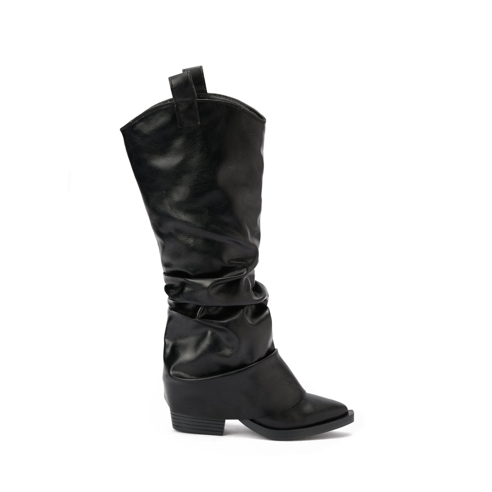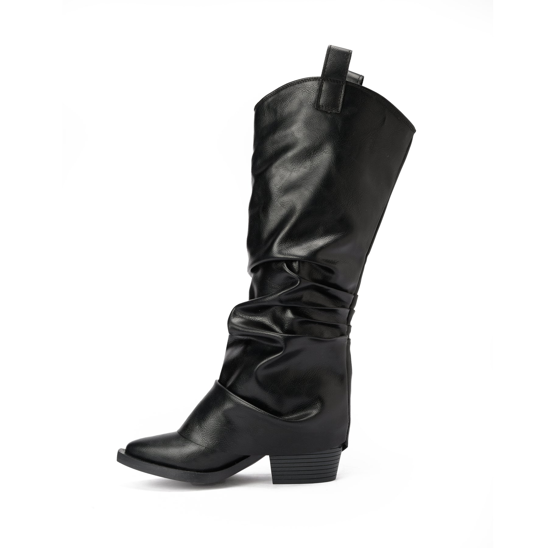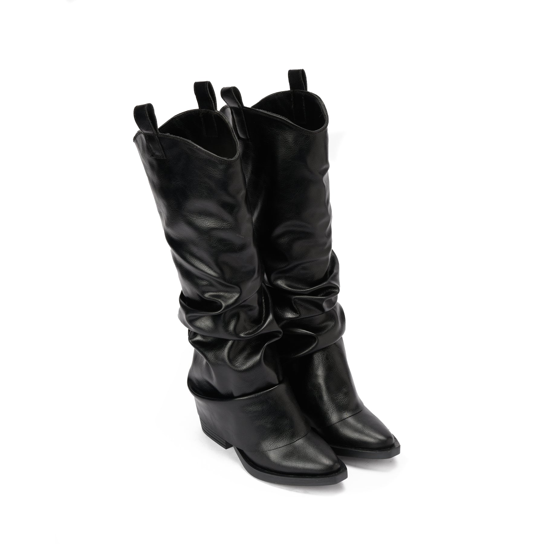 A statement slouch with a sculptor’s touch. The Sculpt Wrap Boot drapes supple espresso-brown faux leather into architectural folds that spiral around the leg, creating movement and drama without the bulk. The softly squared toe and concealed wedge give you subtle lift while keeping the silhouette clean and ultra-modern.